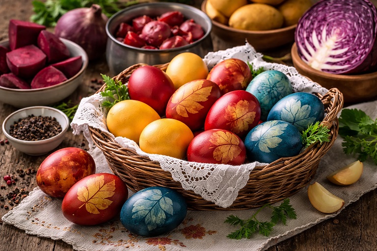 Pe lângă variantele clasice din comerț, tot mai multe gospodine aleg metodele naturale de colorare, apreciate pentru aspectul autentic și pentru faptul că evită substanțele artificiale.