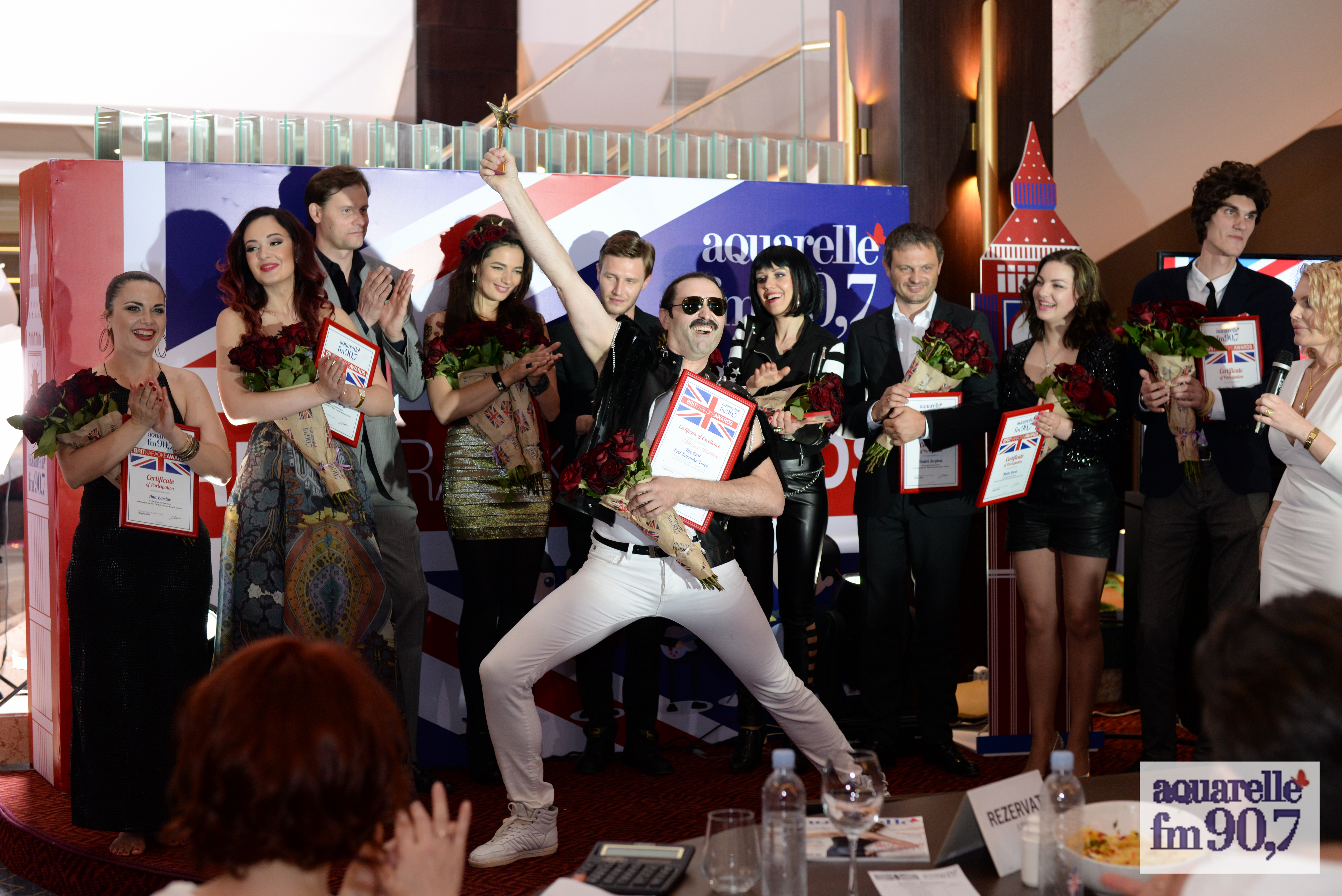 Ieri, 27 mai, postul de radio Aquarelle 90,7 FM a premiat cele mai bune voci ale concursului Brit Karaoke Awards, în cadrul căruia 10 personalităţi cunoscute au cîntat hituri britanice.